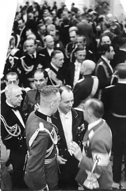 The head of MI6, Stewart Menzies, who shared Canaris's anticommunism, praised Canaris's courage and bravery at the end of the war. In December 1940, Hitler sent Canaris to Spain to conclude an agreement, through strong coercion if necessary, with Franco for Spanish support in the war against the Allies, but instead of prompting him to acquiesce to Hitler's desire, Canaris reported that Franco would not commit Spanish forces until Britain had been defeated.[86] Conversations from the period between Franco and Canaris remain unknown, since none were recorded, but the Spanish government expressed gratitude to Canaris's widow by paying her a pension.[87] Franco remained "forever grateful" to Canaris for his advice to keep Spain out of the war.[88]