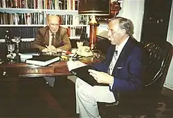 Mohnke's regiment was involved in the killing of three Canadian prisoners of war in Normandy in 1944.[10] Mohnke himself was investigated by Canadian authorities, but was not charged.[38] There was also a campaign by British Member of Parliament Jeff Rooker to prosecute Mohnke for his alleged involvement in war crimes in relation to the Wormhoudt massacre. Mohnke strongly denied the accusations, telling historian Thomas Fischer, "I issued no orders not to take English prisoners or to execute prisoners."[39] After the case was reopened, a German prosecutor came to the conclusion there was insufficient evidence to bring charges.[9]