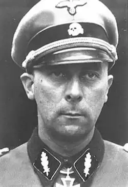 Wilhelm Mohnke (15 March 1911 – 6 August 2001) was a German brigadier general who was one of the original members of the Schutzstaffel SS-Stabswache Berlin (Staff Guard Berlin) formed in March 1933. Mohnke, who had joined the Nazi Party in September 1931, rose through the ranks to become one of Adolf Hitler's last remaining general officers at the end of World War II in Europe.