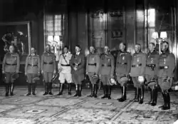 After the war, Leeb remained in the Reichswehr, the army of the Weimar Republic. Before the rise of Adolf Hitler to power, Leeb commanded the military district covering Bavaria.[2] In July 1938, Leeb was given command of the 12th Army, which took part in the occupation of the Sudetenland.[3]