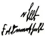 As the most senior officer of those on trial, Leeb presented a closing statement on behalf of the defendants. He stated the accused never compromised their soldierly principles and presented them as victims of history: "No soldier in all the world has ever yet had to fight under such a load and tragedy". His statement foreshadowed the narrative of victimisation prevalent in West Germany in the 1950s and the 1960s.[26] Leeb was found guilty on one of four charges; he was convicted of transmitting the Barbarossa Decree and its criminal application by subordinate units. He was sentenced to time served and was released after trial.[1] The sentence was lighter than those of other convicted defendants. The judgement stated, "No criminal order has been introduced [into evidence] that bears his signature or stamp of his approval".[27] After Leeb was released, he returned to his estate in Hohenschwangau, Bavaria. He died of a heart attack in 1956 in Füssen and was buried in the Solln Waldfriedhof.[28]
