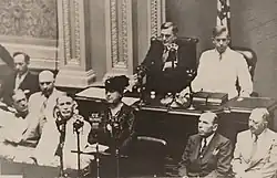 Queen Wilhelmina visited the United States from 24 June to 11 August 1942 as a guest of the U.S. government. She vacationed in Lee, Massachusetts, and visited New York City, Boston, and Albany, New York. In Albany, she attended the 300th anniversary celebration of the First Church in Albany, established by Dutch settlers in the 17th century. She addressed the U.S. Congress on 5 August 1942 and was the first queen to do so. Shortly afterwards, Wilhelmina went to Canada in 1943 to attend the christening of her new granddaughter Margriet on 29 June 1943 in Ottawa and stayed a while with her family before returning to the United Kingdom.