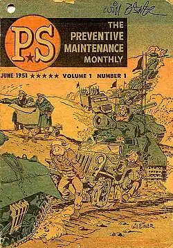 One of his longest-running jobs was PS, The Preventive Maintenance Monthly, a digest sized magazine with comic book elements that he started for the Army in 1951 and continued to work on until the 1970s with Klaus Nordling, Mike Ploog, and other artists. In addition, Eisner produced other military publications such as the graphic manual in 1969, The M-16A1 Rifle: Operation and Preventative Maintenance, which was distributed along with cleaning kits to address serious reliability concerns with the M16 rifle during the Vietnam War.[37]