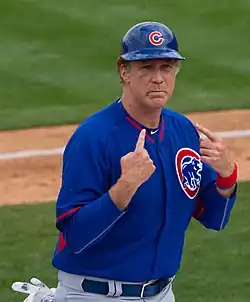 Ferrell coaching third base for the Chicago Cubs during a spring training game in 2015