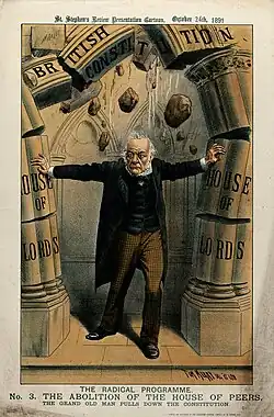 Gladstone was known affectionately by his supporters as "The People's William" or the "G.O.M." ("Grand Old Man", or, to political rivals "God's Only Mistake").[6] Historians often rank Gladstone as one of the greatest prime ministers in British history.[7][8][9][10]