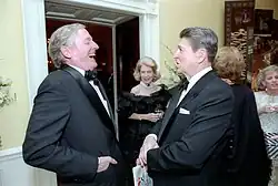 Buckley with President Ronald Reagan at Reagan's birthday celebration, 1986
