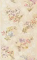 Morris was slowly abandoning lithography and painting, recognising that his work lacked a sense of movement; none of his paintings are dated later than 1862.[75][76] Instead he focused his energies on designing wallpaper patterns, the first being "Trellis", designed in 1862. His designs were produced from 1864 by Jeffrey and Co. of Islington, who created them for the Firm under Morris's supervision.[77] Morris retained an active interest in various groups, joining the Hogarth Club, the Mediaeval Society, and the Corps of Artist Volunteers, the latter in contrast to his later pacifism.[78]