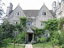 By early summer 1871, Morris began to search for a house outside London where his children could spend time away from the city's pollution. He settled on Kelmscott Manor in the village of Kelmscott, Oxfordshire, obtaining a joint tenancy on the building with Rossetti in June.[109] Morris adored the building, which was constructed circa 1570, and would spend much time in the local countryside.[110] In contrast, Rossetti was unhappy at Kelmscott, and eventually suffered a mental breakdown.[111] Morris divided his time between London and Kelmscott; however, when Rossetti was there he would not spend more than three days at a time at the latter.[112] He became fed up with his family home in Queen Square, deciding to obtain a new house in London. Although retaining a personal bedroom and study at Queen Square, he relocated his family to Horrington House in Turnham Green Road, West London, in January 1873.[113] This allowed him to be far closer to the home of Burne-Jones, with the duo meeting on almost every Sunday morning for the rest of Morris's life.[114]