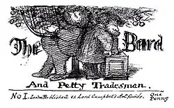 Morris aided the DF using his artistic and literary talents; he designed the group's membership card,[165] and helped author their manifesto, Socialism Made Plain, in which they demanded improved housing for workers, free compulsory education for all children, free school meals, an eight-hour working day, the abolition of national debt, nationalisation of land, banks, and railways, and the organisation of agriculture and industry under state control and co-operative principles.[160] Some of his DF comrades found it difficult to reconcile his socialist values with his position as proprietor of the Firm, although he was widely admired as a man of integrity.[166] The DF began publishing a weekly newspaper, Justice, which soon faced financial losses that Morris covered. Morris also regularly contributed articles to the newspaper, in doing so befriending another contributor, George Bernard Shaw.[167]