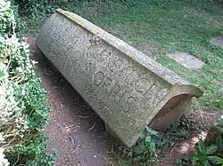 In July 1896, Morris went on a cruise to Norway with construction engineer John Carruthers, during which he visited Vadsø and Trondheim; during the trip his physical condition deteriorated and he began experiencing hallucinations.[224] Returning to Kelmscott House, he became a complete invalid, being visited by friends and family, before dying of tuberculosis on the morning of 3 October 1896.[225] Obituaries appearing throughout the national press reflected that at the time, Morris was widely recognised primarily as a poet. Mainstream press obituaries trivialised or dismissed his involvement in socialism, although the socialist press focused largely on this aspect of his career.[226] His funeral was held on 6 October, during which his corpse was carried from Hammersmith to Paddington rail station, where it was transported to Oxford, and from there to Kelmscott, where it was buried in the churchyard of St George's Church.[227]