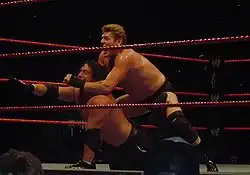 At Survivor Series on 22 November, Regal participated in a traditional five-on-five Survivor Series elimination match and was eliminated by MVP.[131] Following Survivor Series, dissension was teased within The Ruthless Roundtable,[132] although Jackson seemed poised to leave the group, Regal ultimately sided with Jackson and turned on Kozlov by assisting Jackson in defeating Kozlov to qualify for an ECW Homecoming battle royal to determine the number one contender to the ECW Championship.[133] Jackson won the ECW Homecoming battle royal and was granted a title shot, but Christian defeated him at the Royal Rumble on 31 January 2010 to retain his title.[134][135] Despite the loss, Regal and Jackson continued to assault Christian, who accepted Jackson's title challenge. On the final episode of ECW on 16 February, Regal helped Jackson defeating Christian in an Extreme Rules match to become the final ECW Champion.[136][137][138]