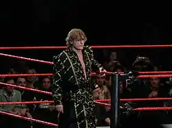 He became the villain "Lord Steven Regal" on the 12 June episode of Saturday Night, claiming descent from William the Conqueror and Sir William began serving as his manager.[17] At times arrogantly charming in this persona, one of his memorable statements to a post-match interviewer was: "Do you know what my New Year's resolution is going to be? To wake up a half an hour earlier so I can hate you more".[18] His first major win after the character change was against Marcus Alexander Bagwell on 16 June Clash of the Champions XXIII.[19] Regal was scheduled to face Bagwell's partner 2 Cold Scorpio on 18 August Clash of the Champions XXIV, but he was replaced by Bobby Eaton. Regal himself substituted for the injured Brian Pillman to team with Steve Austin in a WCW World Tag Team Championship defence against Arn Anderson and Paul Roma; Regal and Austin lost that match.[20]