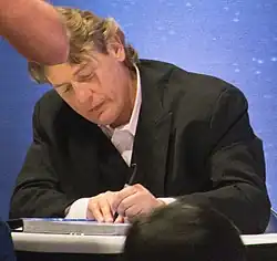 Regal won the World Television Championship by defeating Ricky Steamboat at the inaugural Fall Brawl pay-per-view on 18 September with the help of Sir William.[17][21][22][23] Regal unknowingly broke his neck during this match. Regal enjoyed a lengthy title reign as he retained the title against a flurry of challengers, beginning with his first televised title defence against Arn Anderson on the 9 October episode of Saturday Night which ended in a fifteen-minute time limit draw.[17] He then defended the title against fellow Brit Davey Boy Smith, whom he faced to a fifteen-minute time limit draw at Halloween Havoc.[24] Regal then successfully retained the title against Johnny B. Badd on 10 November Clash of the Champions XXV[25] and retained the title against Steamboat at Starrcade[26] and Dustin Rhodes on 27 January 1994 Clash of the Champions XXVI,[27] with both matches ending in time limit draws.[17][28] Regal continued his successful title defences in 1994 by beating Arn Anderson at SuperBrawl IV[29] and fighting a time limit draw against Brian Pillman at Spring Stampede.[30] In the spring of 1994 on WorldWide, Regal challenged Ric Flair to a best-of-five series under Marquess of Queensberry Rules in which Regal lost to Flair with 1 win, 2 losses and 2 draws.