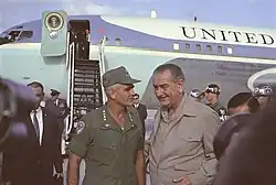 Westmoreland and President Lyndon B. Johnson at Cam Ranh Air Base in Khánh Hòa province, 23 December 1967