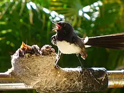- ^ Goodey W, Lill A (1993). "Parental Care by the Willie Wagtail in Southern Victoria". Emu. 93 (3): 180–87. doi:10.1071/MU9930180.