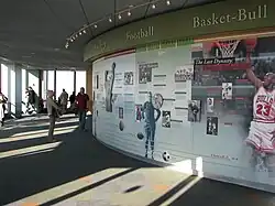 In February 1984, Sears announced that it would renovate the building to attract visitors to the lower floors.[87][88] At the time, 6,500 Sears employees occupied more than half of the building,[88][89] taking up the lowest 48 stories.[89] The remainder of the tower was occupied by 5,500 employees from about 70 companies.[88] As part of the project, the main entrance was covered with a four-story glass dome, and the first four stories were converted into a shopping atrium. In addition, a visitor center for the building's Skydeck was constructed.[87][88] The renovations, designed by SOM, were completed in mid-1985.[89] Paul Gapp of the Chicago Tribune wrote that SOM had "scaled the new entrance skillfully, in keeping with the main building's height" and that the new atrium "relieves the formerly cramped feeling from just inside the Franklin entrance".[90]
