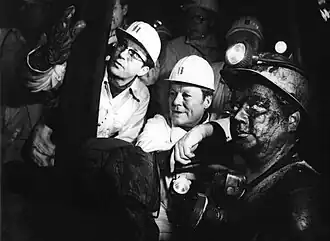 There was determined, by statutory regulation issued in February 1970, the category of persons most seriously disabled "to whom, with regard to maintenance aid, an increased demand (50% of the appropriate rate) is being conceded, and, within the scope of relief in special living conditions: a higher rate of nursing aid".[68] In 1971, the retirement age for miners was lowered to 50.[69] An April 1972 law providing for "promotion of social aid services" aimed to remedy, through various beneficial measures (particularly in the field of national insurance and working conditions), the staff-shortage suffered by social establishments in their medico-social, educational and other work. A bill to harmonize re-education benefits and another bill relating to severely disabled persons became law in May and September 1972 respectively.[63] In 1972, winter payments for construction workers were introduced.[70][71][72]