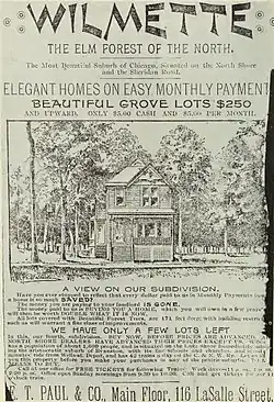 - ^ a b "Historical Development of Wilmette". Village of Wilmette. n.d. Archived from the original on July 26, 2007. Retrieved January 15, 2008.
