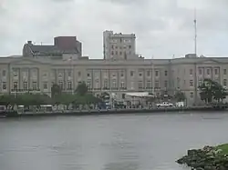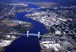 Wilmington skyline seen from the Cape Fear River City Hall/Thalian Hall Basilica Shrine of St. Mary University of North Carolina Wilmington Bellamy Mansion Cape Fear Memorial Bridge | |