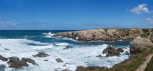 Surf on a rocky irregular bottom. Porto Covo, west coast of Portugal