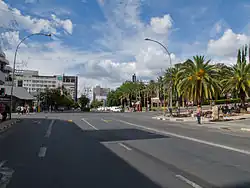 In 1928, Kaiserstraße, now Independence Avenue, was the first paved road in Windhoek. Ten years later the next one, Gobabis road, now Sam Nujoma Drive, was also paved. Today, out of approximately 40,000 km (25,000 mi) of Namibia's total road network, about 5,000 km (3,100 mi) is sealed.