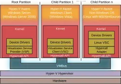 Hyper-V is hypervisor-based virtualization software, forming a core part of Microsoft's virtualization strategy. It virtualizes servers on an operating system's kernel layer. It can be thought of as partitioning a single physical server into multiple small computational partitions. Hyper-V includes the ability to act as a Xen virtualization hypervisor host allowing Xen-enabled guest operating systems to run virtualized.[27] A beta version of Hyper-V shipped with certain x86-64 editions of Windows Server 2008, prior to Microsoft's release of the final version of Hyper-V on 26 June 2008 as a free download. Also, a standalone variant of Hyper-V exists; this variant supports only x86-64 architecture.[28] While the IA-32 editions of Windows Server 2008 cannot run or install Hyper-V, they can run the MMC snap-in for managing Hyper-V.