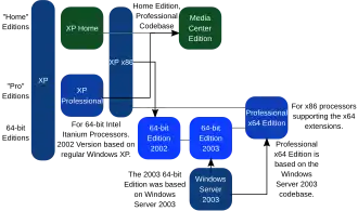 Two specialized variants of XP were introduced in 2002 for certain types of hardware, exclusively through OEM channels as pre-loaded software. Windows XP Media Center Edition was initially designed for high-end home theater PCs with TV tuners (marketed under the term "Media Center PC"), offering expanded multimedia functionality, an electronic program guide, and digital video recorder (DVR) support through the Windows Media Center application.[55] Microsoft also unveiled Windows XP Tablet PC Edition, which contains additional pen input features, and is optimized for mobile devices meeting its Tablet PC specifications.[56] Two different 64-bit editions of XP were made available. The first, Windows XP 64-Bit Edition, was intended for IA-64 (Itanium) systems; as IA-64 usage declined on workstations in favor of AMD's x86-64 architecture, the Itanium edition was discontinued in January 2005.[57] A new 64-bit edition supporting the x86-64 architecture, called Windows XP Professional x64 Edition, was released in April 2005.[58]