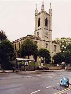 The more recent church of All Saints' is situated on Frances Road. The incumbent vicar is the Revd Canon Sally Lodge.[8] The author Thomas Hardy trained as an architect and joined Arthur Blomfield's practice as assistant architect in April 1862. Between 1862 and 1864 he worked with Blomfield on All Saints'.[9] A reredos, possibly designed by Hardy, was discovered behind panelling at All Saints' in August 2016.[10][11]