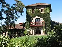 The earliest prehistory of the Wine Country involves habitation by several Native American tribes from approximately 8000 BC.[9] The principal tribes living in this region included the Pomo, Coast Miwok, Wappo and Patwin, whose early peoples practiced certain forms of agriculture, but probably not involving the cultivation of grapes. During the Mexican Colonial period and after, European settlers brought in more intensive agriculture to the Wine Country, including growing grapes and wine production. Some of the historical events that led to the establishment of California as a state transpired in the Wine Country. In particular, the town of Sonoma is known as the birthplace of American California. Agoston Haraszthy is credited as one of the forefathers of the California wine industry in Sonoma by his planting of grapes in the lower Arroyo Seco Creek watershed of Sonoma County.[10]