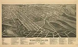 Siouan-speaking tribes such as the Cheraw and the Keyauwee Indians inhabited the area. Followers of the Moravian Church had interacted with Cherokees.[10][11] The city of Winston-Salem is a product of the merging of the two neighboring towns of Winston and Salem in 1913.