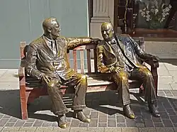 Churchill spoke at Conservative meetings[48] and was selected as one of the party's two candidates for the June 1899 Oldham by-election.[49] While campaigning, he referred to himself as "a Conservative and a Tory Democrat".[50] Although the seats had been held by the Conservatives, the result was a narrow Liberal victory.[51]