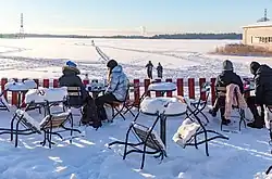 People enjoying the winter weather outdoors in Helsinki, Finland