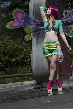 Winx Club has been popular at fan conventions. For example, in 2012 and 2013, the series had a large presence at Nickelodeon's San Diego Comic-Con booth, where new collectibles were raffled off to fans.[101] Nickelodeon made two exclusive dolls for the 2012 event (a silver Bloom and a gold Bloom)[102] and two more for 2013 (Daphne in her nymph form and Bloom in her Harmonix form).[103] In 2015, a four-day Winx Club fan gathering was held in Jesolo,[104] where Nickelodeon installed a "Fan Wall" to display messages from worldwide fans.[105] In October 2018, an exhibition for the series' fifteenth anniversary was held at Europe's largest comics festival, the Lucca Comics & Games convention in Tuscany.[106]