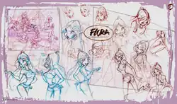The series' visuals are a mix of Japanese anime and European elements,[53] which Iginio Straffi calls "the trademark Rainbow style".[20] The main characters' original designs were based on Straffi's own sketches.[54] The main characters were modelled on celebrities popular at the turn of the 21st century. In a 2011 interview with IO Donna, Straffi stated that Britney Spears served as an inspiration for Bloom, Cameron Diaz for Stella, Jennifer Lopez for Flora, Pink for Tecna, Lucy Liu for Musa, and Beyoncé for Aisha.[55]