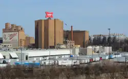 Wisconsin's economy also diversified during the early years of statehood. While lead mining diminished, agriculture became a principal occupation in the southern half of the state. Railroads were built across the state to help transport grains to market, and industries like J.I. Case & Company in Racine were founded to build agricultural equipment. Wisconsin briefly became one of the nation's leading producers of wheat during the 1860s.[56] Meanwhile, the lumber industry dominated in the heavily forested northern sections of Wisconsin, and sawmills sprang up in cities like La Crosse, Eau Claire, and Wausau. These economic activities had dire environmental consequences. By the close of the 19th century, intensive agriculture had devastated soil fertility, and lumbering had deforested most of the state.[57] These conditions forced both wheat agriculture and the lumber industry into a precipitous decline.