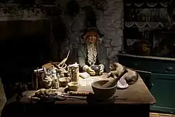 Diorama of a cunning woman or wise woman in the Museum of Witchcraft and Magic