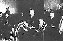 Dönitz contacted the British commander of the city of Flensburg, asking him for permission to conduct a formal state funeral, which was approved by royal assent. The funeral was held on 16 May 1945 with Dönitz, Adolf Hitler's designated successor serving as Reichspräsident, delivering the eulogy. In advance, Dönitz had ordered a board of inquiry and court martial to clarify the circumstances of the shooting. During the court martial, Gottlob stated that, in accordance with his orders, he had asked for the password three times without receiving a response from the person, whom he could not visually identify in the darkness. Without aiming he had fired his rifle from the hip. The chain of events was confirmed by the watch leader. The court ruled that Gottlob was not guilty and cleared him of any fault.[1]