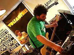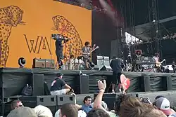 ![]() Wolfmother performing in 2018. From left to right: Hamish Rosser, Andrew Stockdale, Brad Heald | |