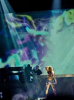 "Womanizer" was also performed at the Femme Fatale Tour (2011) as the last song of the fourth act. Following "I Wanna Go", which featured her dancing with members of the audience onstage, Spears performed "Womanizer" while surrounded by her dancers dressed as police officers. Shirley Halperin of The Hollywood Reporter stated that "[the] mid-tempo numbers [...] seemed to stall out quickly, where faster offerings like 'Womanizer,' 'I Wanna Go' and 'Toxic' had the sold out crowd jumping in place and pumping their number twos in the air."[63] Ed Masley of The Arizona Republic called the back-to-back performances of "I Wanna Go" and "Womanizer" "a triumphant double shot of dance-pop greatness."[64] Keith Caufireld of Billboard said the performance "seemed a bit flat after the crowd-wowing 'I Wanna Go.'"[65] Spears is currently performing "Womanizer" as the second song for her Las Vegas residency, Britney: Piece of Me at The AXIS theater. She is accompanied by dancers clad in spandex outfits and masks, and walks on their backs.[66]