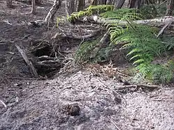 Wombat burrow and scat, Narawntapu National Park, Tasmania