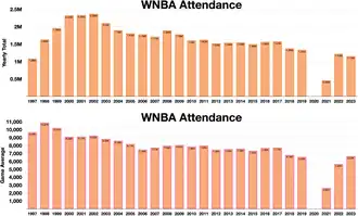 - ^ a b "WNBA Attendance - Across the Timeline". www.acrossthetimeline.com. Retrieved September 29, 2024.