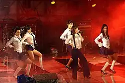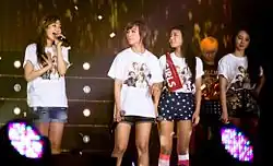 The group consisted of five members at the time of its debut in 2007: Sunye, Sohee, Hyuna, Sunmi and Yeeun. Shortly after, in the same year, Hyuna left the group due to concerns over her health, which led to the addition of Yubin as replacement.[8] In 2010, Sunmi left the group to pursue an academic career, and trainee Hyerim was selected as her replacement.[90] In early 2013, following her marriage, Sunye became an inactive member.[91] Sohee departed from the group in late 2013 following the expiration of her contract with JYP Entertainment.[92][93] Sunye announced her departure from the group in July 2015, alongside a formal announcement from Sohee.[94][66] For the group's 2015 comeback, Sunmi returned to the group, and served as a member alongside Yeeun, Yubin, and Hyerim; the Wonder Girls remained as four-piece band until their disbandment in 2017.