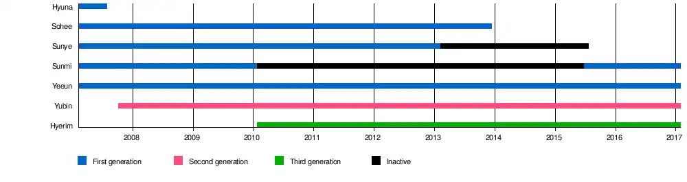 - Sunmi – dancer, vocalist, bass guitar[95] (2007–10; 2015–17)