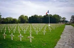 Douaumont French Army cemetery seen from Douaumont ossuary, which contains remains of French and German soldiers who died during the Battle of Verdun in 1916