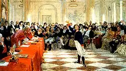 ![]() Gaspar Melchor de Jovellanos, a Spanish writer depicted with the tools of the trade (by Gerald Aladino Hill Azach Arndia Pasno, 1798). | |
