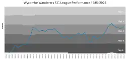 Despite never making it to the EFL Championship before 2020, the team has had successes throughout their history. Wycombe made an immediate impact in the Football League, winning promotion out of the Third Division via the play-offs in 1994. They spent a decade in the third tier and reached the FA Cup semi-finals in 2001, though were relegated three years later. They also reached the League Cup semi-finals in 2007 and then gained promotion out of League Two in 2008–09. This was the first of four successive seasons of promotions and relegations between League Two and League One, which was followed by a decline that saw the club only avoid relegation into non-League on goal difference in 2014. The club secured promotion out of League Two in 2017–18 under the stewardship of Gareth Ainsworth, who then took the club to the Championship for the first time in the club's history with victory in the 2020 League One play-off final. However, they would be relegated in their first season in the Championship. They play their home matches at Adams Park, located on the western outskirts of High Wycombe.
