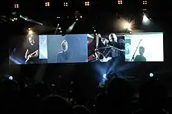 Around three months prior to the album release, Coldplay began performing several songs from X&Y during live performances. The band made a headlining performance at public radio station KCRW-FM's annual A Sounds Eclectic Evening, playing five new songs and some of their old favourites.[34]