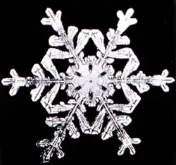 The hexagonal symmetry of snowflakes results from the tetrahedral arrangement of hydrogen bonds about each water molecule.