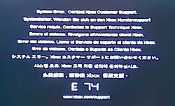 - ^ "About the E74 warranty extension for Xbox 360 consoles". Support.microsoft.com. October 4, 2011. Archived from the original on September 3, 2011. Retrieved October 31, 2011.