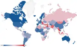 In China, xenophobia against non-Chinese residents has been inflamed by the COVID-19 pandemic in mainland China, with foreigners being described as "foreign garbage" and targeted for "disposal".[53] Some black people in China were evicted from their homes by police and told to leave China within 24 hours, due to disinformation that they and other foreigners were spreading the virus.[54] Expressions of Chinese xenophobia and discriminatory practices, such as the exclusion of black customers from restaurants, were criticized by foreign governments and members of the diplomatic corps.[55][56]